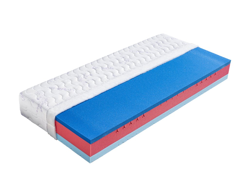 Matrace, jejíž jádro tvoří 12 cm vysoká vrstva speciální červené antibakteriální pěny (32 kg/m³) značky Sanitized, která poskytuje trvalou a účinnou ochranu proti bakteriím, roztočům a plísním. Tyto vlastnosti ocení nejen alergici, ale i ti, kteří kladou důraz na vysokou hygienu lůžka. Je navržena se zářezy ve tvaru „Y“, které napomáhají odlehčení v místech největšího zatížení - oblast ramen. Vrchní stranu matrace změkčuje oblíbená viscoelastická pěna (50 kg/m³). Je charakteristická efektem pomalého vracení se do původní polohy. Pouhým přetočením matrace získáte pevnější stranu se vzdušnou a elastickou studenou HR pěnou (40 kg/m³), která má antidekubitní prořezy v pěti zónách. Dokonale se přizpůsobí ležícímu tělu a zamezuje vzniku proleženin. Matrace je vhodná na všechny typy roštů, včetně motorových.